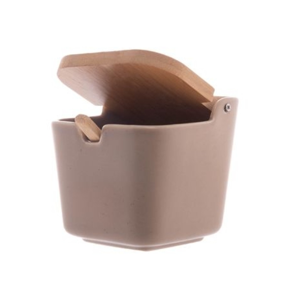 17896 SALEIRO DE CERAMICA C/TAMPA E COLHER DE BAMBU AREIA 10X10,5X10CM