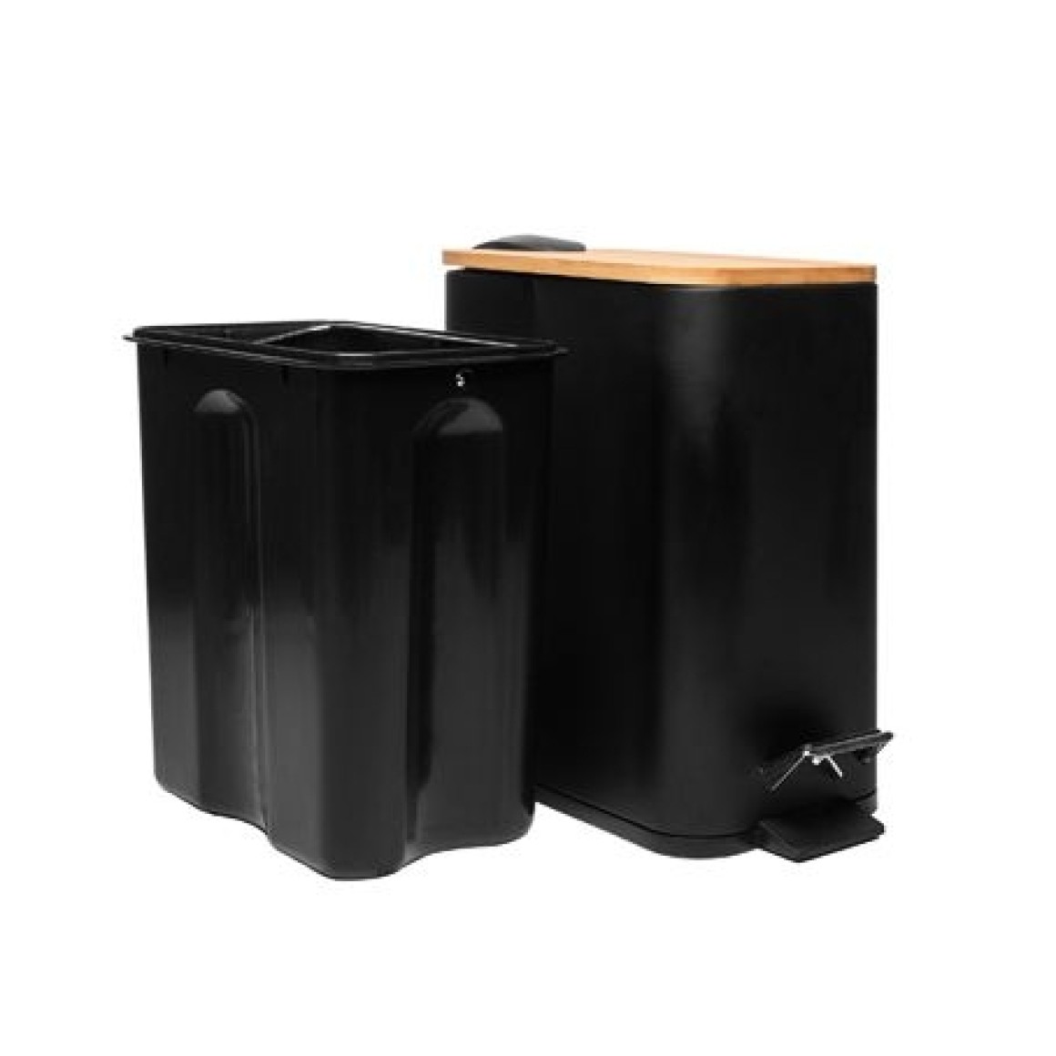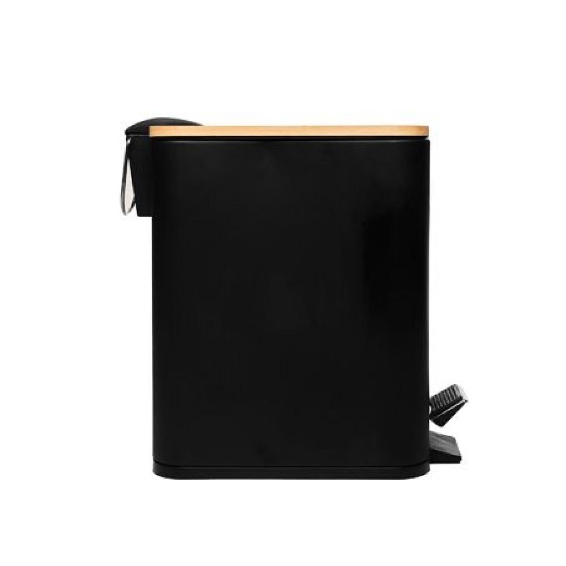 220222 LIXEIRA QUADRADA DE METAL COM PEDAL E TAMPA EM BAMBU PRETA 5L